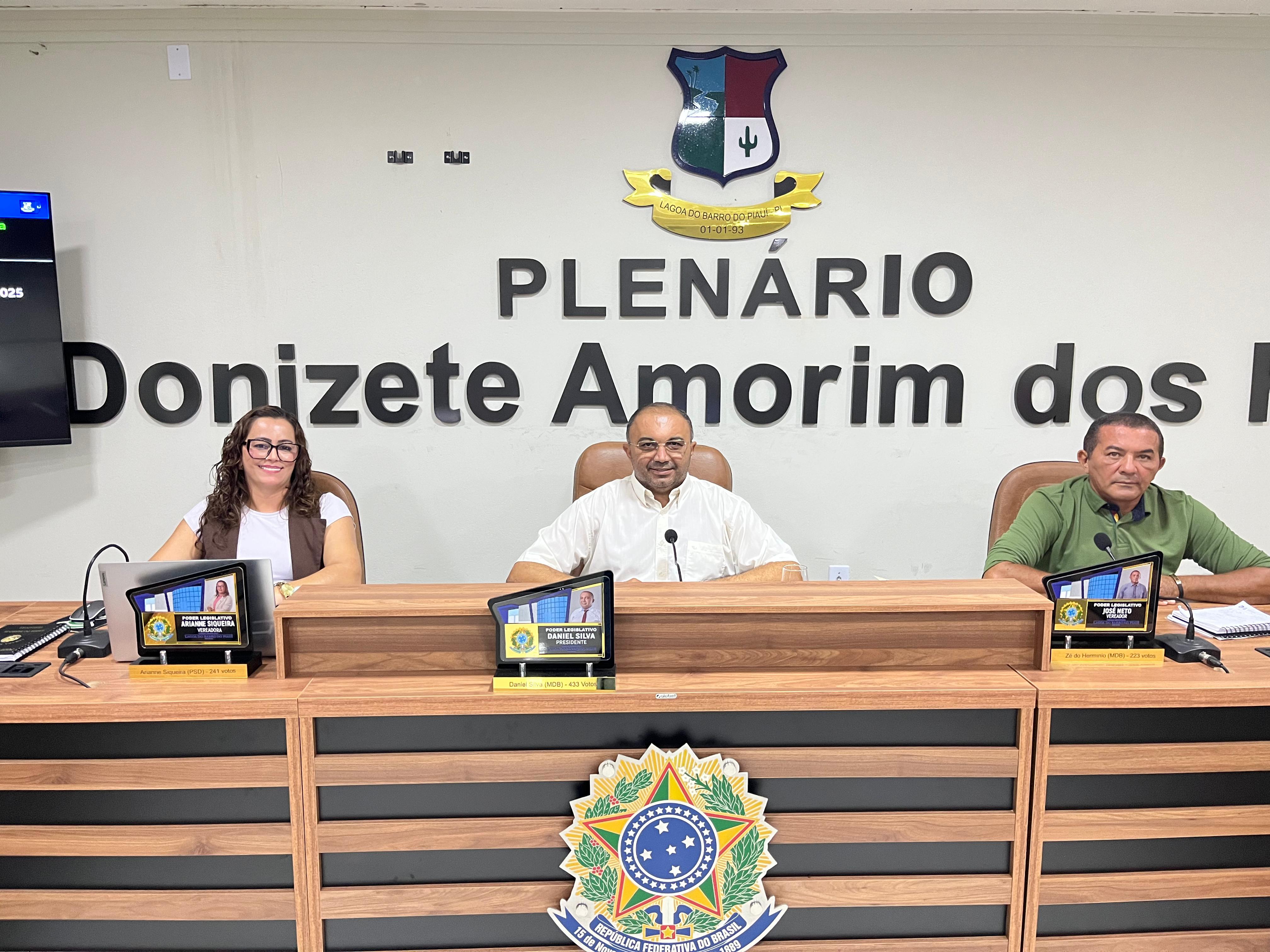 Na noite da última quarta-feira (07), a Câmara Municipal de Lagoa do Barro do Piauí promoveu a primeira sessão ordinária do mês de maio. A condução dos trabalhos foi feita pelo presidente da Casa, vereador Daniel Silva, que iniciou os trabalhos cumprimentando os presentes e realizando a tradicional invocação de bênçãos, pedindo proteção divina para a condução das atividades legislativas. Em seguida, os trabalhos foram encaminhados à secretaria geral da Mesa Diretora, que procedeu com a leitura da ata da sessão anterior, da frequência dos parlamentares, bem como das matérias em pauta para apresentação, discussão e votação em plenário. Durante o expediente, foram protocolados um requerimento e um Projeto de Lei de autoria do Poder Executivo. Também foram apreciados e votados os requerimentos de N° 139/2025 ao N° 146/2025, além do Projeto de Lei N° 006/2025 do Poder Executivo e do Projeto de Lei N° 006/2025 do Poder Legislativo.